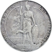 Reverse legend: “ONE FLORIN TWO SHILLINGS 1906”